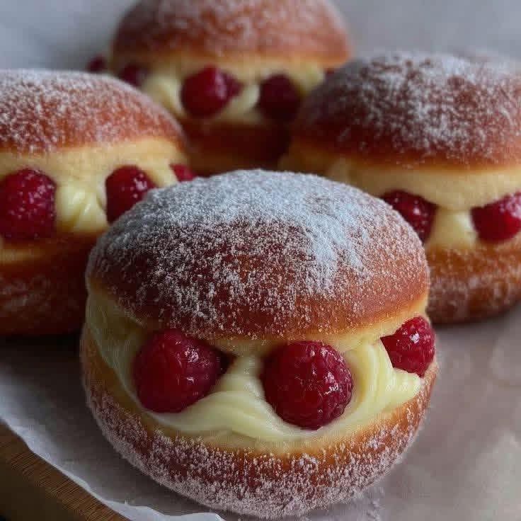 Raspberry and Cream-Filled Donuts