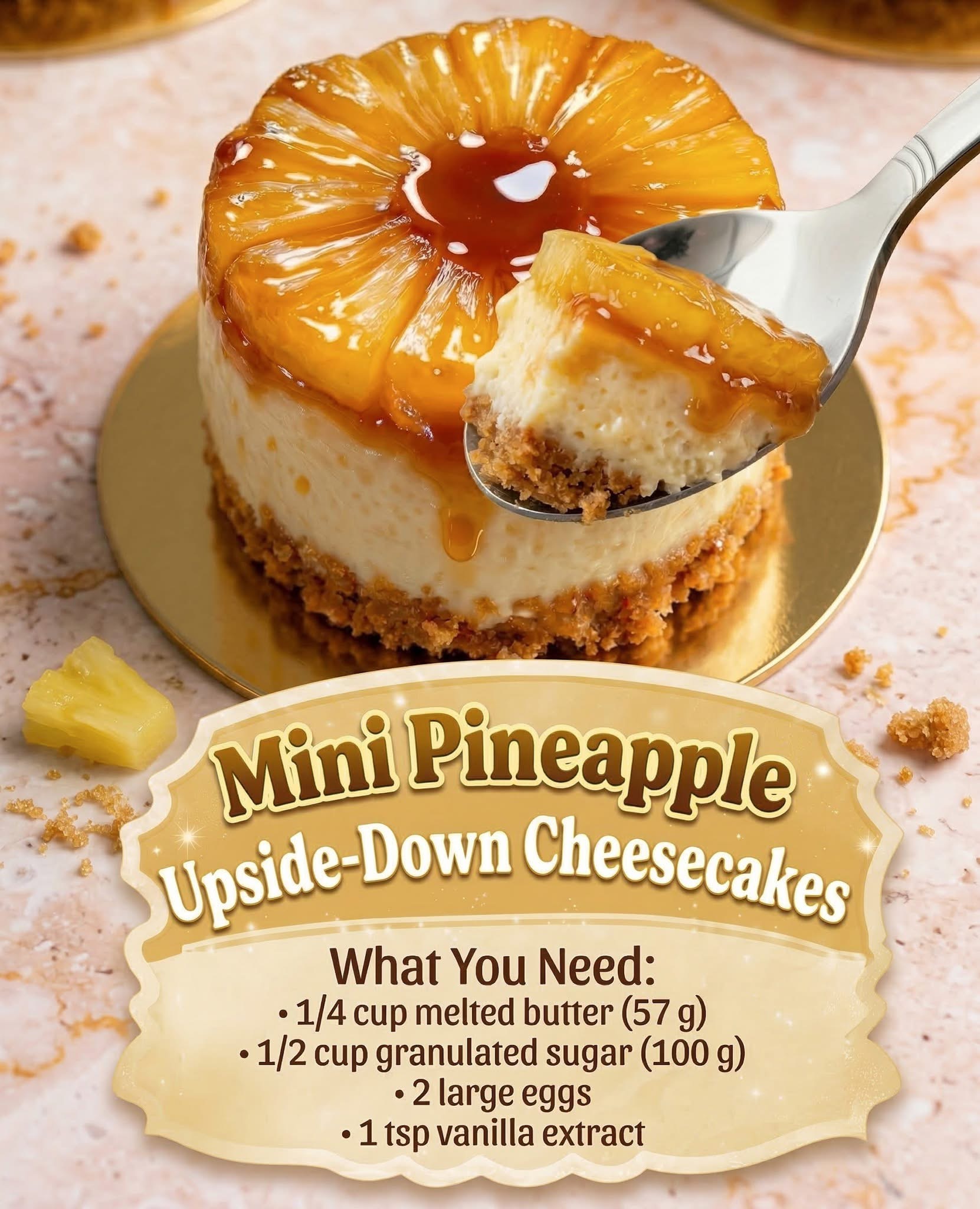 Mini Pineapple Upside-Down Cheesecakes: Golden Pineapple Bliss 🍍✨